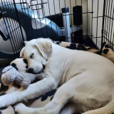 It’s not helped by the fact that he’s starting to bulk out in the last couple of weeks, and put on some real weight which he loves to throw around. All of that weight is muscle, bone and skin. He already has powerful front legs and chest, the hind quarters are still slightly behind. As for the skin it ranges from being taught against the muscles on his legs and rib cage through to almost 2 inches of unused folds on his back and neck. Plenty of growing room. His soft puppy coat continues to be replaced by the river of cream swirling hair that is flowing down his back, in the right light he almost looks like an exquisite sculpture.
